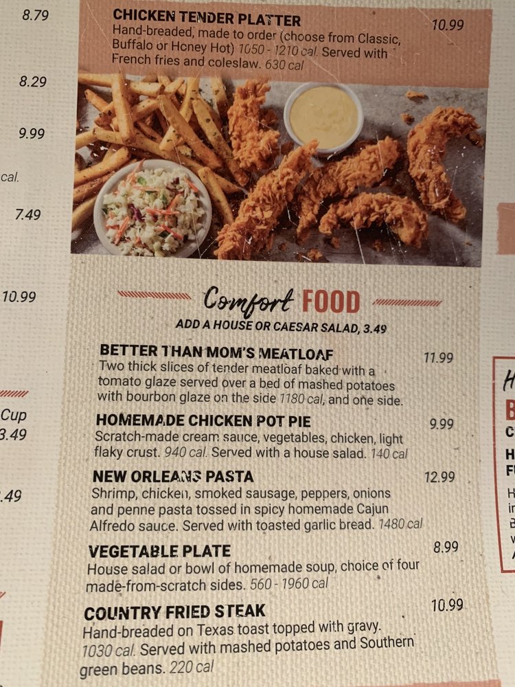 6 oz. center-cut top sirloin and hand-breaded chicken tenders. Upgrade to 8 oz. Sirloin for an additional charge